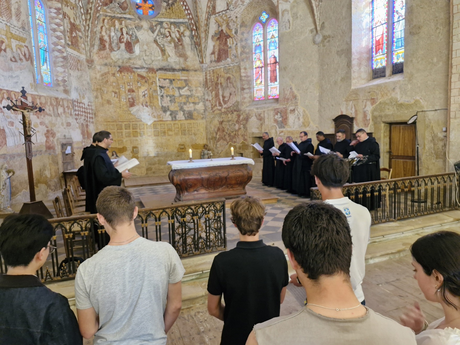 Ce mercredi 8 avril, 8 élèves du Campus se sont rendus dans le magnifique village de Mont d’Astarac, et surtout de son église ornée de fresque du 15ème siècle. En effet, 16 moines de l’abbaye de Tournay, de retour d’une visite de l’abbaye de Boulaur, ont fait escale à l’heure des vêpres, pour prier la liturgie des heures.