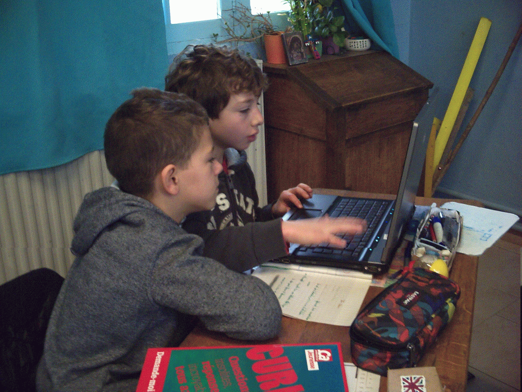 Les enfants ont aussi à leur disposition des ordinateurs portables qui leur permettent de réaliser des travaux numériques de présentations, d’écriture, de recherches…